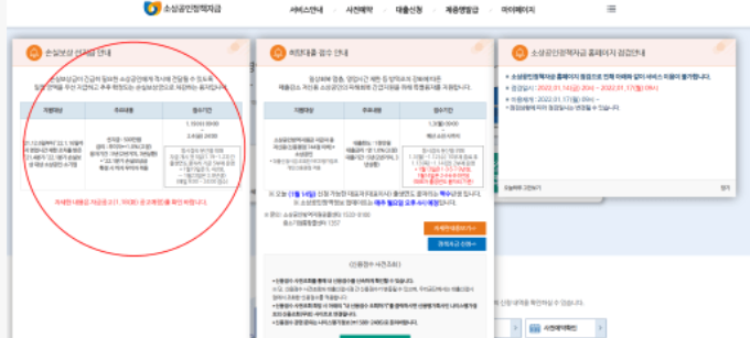 또한 융자기간은 5년으로 2년 거치 후 3년 상환으로, 22년도 1분기 손실보상금 확정시까지는 무이자 적용이 됩니다.